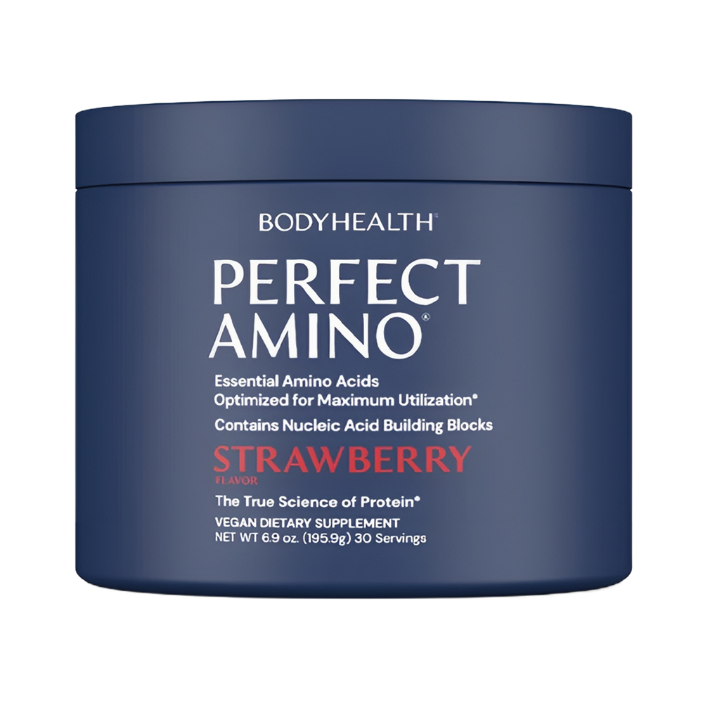 Аминокислоты Perfect Amino Powder Strawberry от BodyHealth — это порошковая форма запатентованной смеси незаменимых аминокислот (EAA) с натуральным клубничным вкусом, оптимизированная для максимального усвоения (до 99%) и синтеза белка. Каждая порция обеспечивает 5 г чистых аминокислот, включая все 8 незаменимых аминокислот + гистидин, а также комплекс нуклеиновых кислот для направления процессов синтеза белка. Продукт не содержит лишних калорий, сахара, глютена и молочных продуктов, идеально подходит для веганов, кето- и палеодиет.