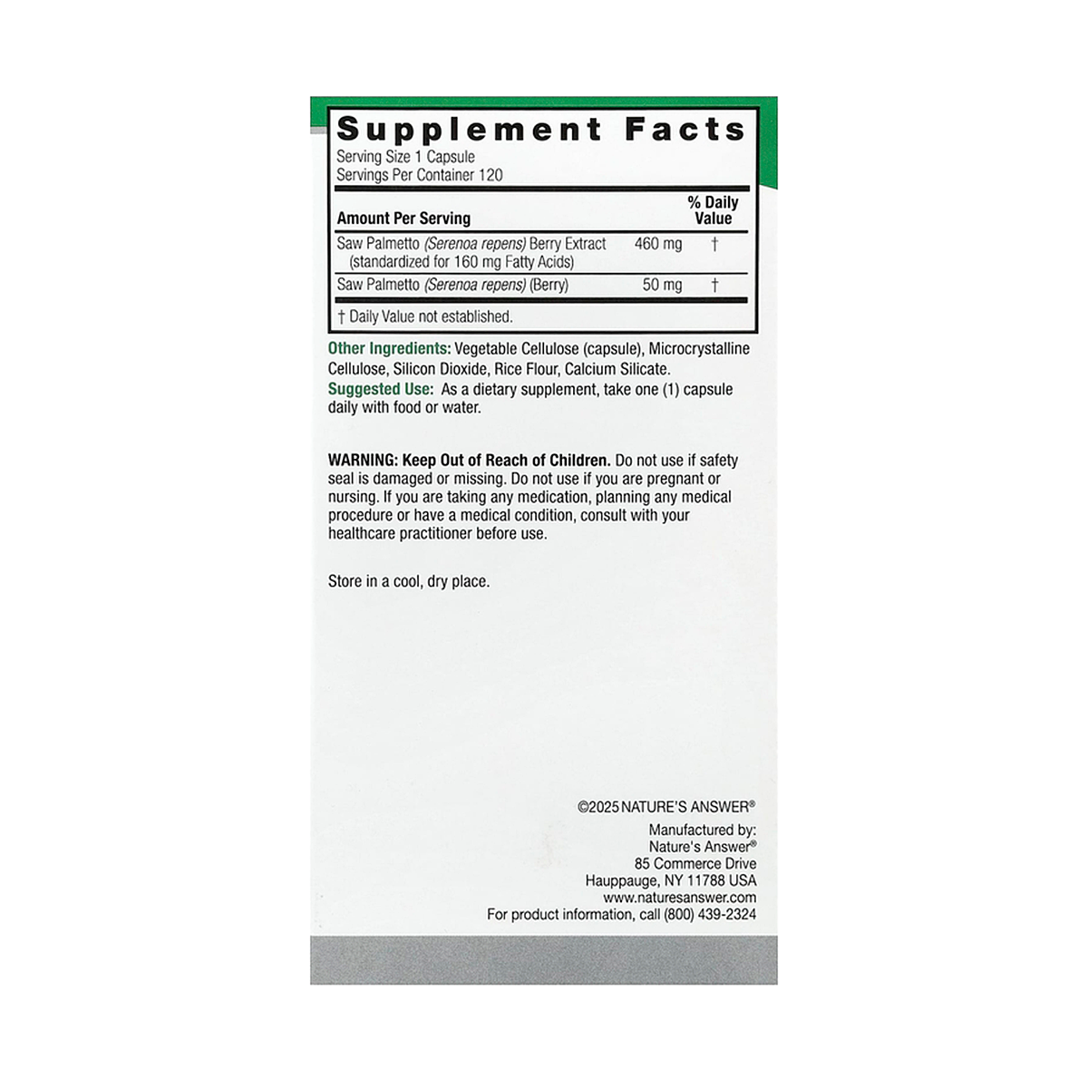 Выбирайте Экстракт пальметто от Nature's Answer для надёжной поддержки мужского здоровья — стандартизированная сила природы с гарантией качества.
