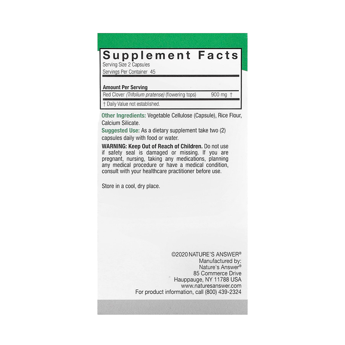 Выбирайте Красный клевер от Nature's Answer для бережной поддержки вашего организма в период гормональных изменений — чистая сила природы в каждой капсуле.