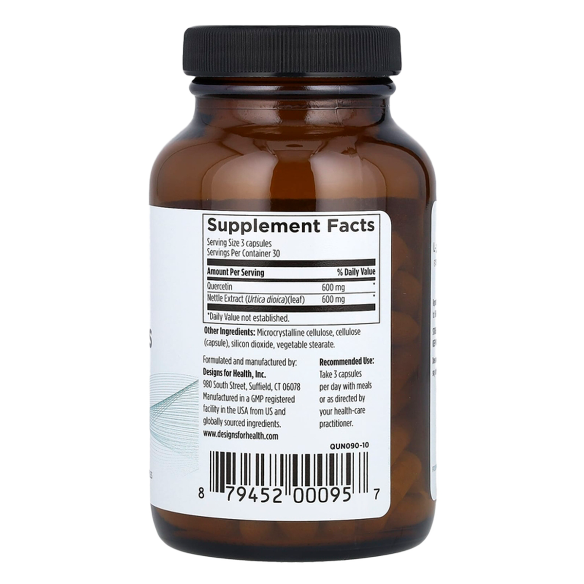 Каждая порция (3 капсулы) содержит 600 мг кверцетина и 600 мг экстракта листьев крапивы. Упаковки из 90 капсул достаточно для 30 дней ежедневного приёма.