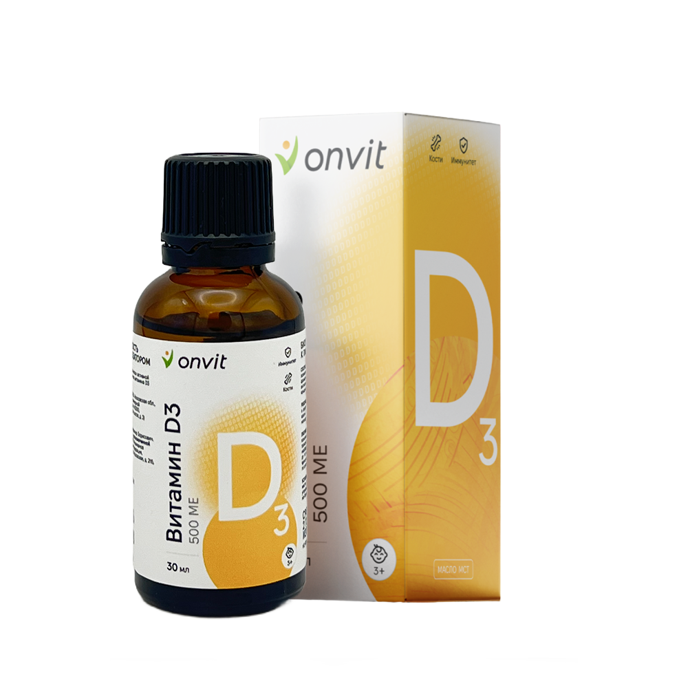 Поддержите свое здоровье с витамином D3 500 МЕ от ONVIT! Этот продукт поможет укрепить кости, повысить иммунитет и поддержать сердечно-сосудистую систему. Упаковка на 30 мл обеспечит вас достаточным количеством важного витамина на месяц.