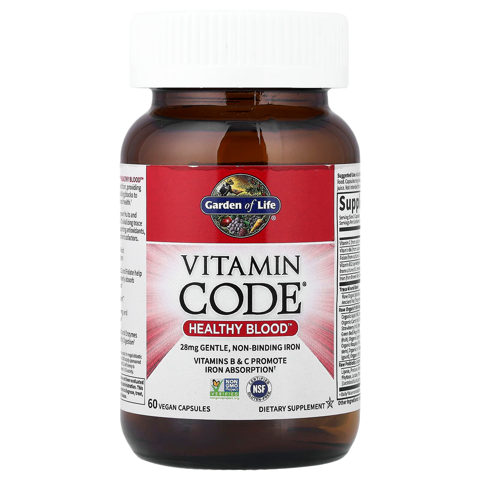 Выбирайте Vitamin Code Healthy Blood от Garden of Life для премиальной поддержки вашего кроветворения — чистота и сила сырых продуктов в каждой капсуле.