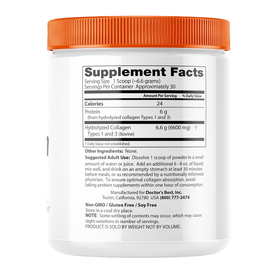 В Doctor's Best мы верим в заботу о красоте и благополучии изнутри. Благодаря гидролизованным коллагеновым пептидам типов 1 и 3 (без BSE), наша формула поддерживает здоровье тканей, прочность костей и гибкость суставов, способствуя красоте волос, кожи, ногтей, а также общей выносливости и силе.