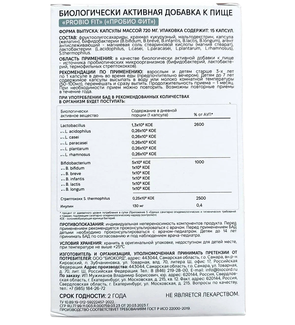 Комплекс включает лакто- (Lactobacillus lactis, Lactobacillus rhamnosus, Lactobacillus casei) и бифидобактерии (Bifidobacterium longum, Bifidobacterium bifidum):